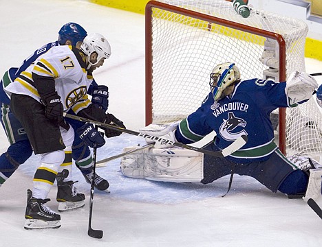 Vancouver killed another Boston power play and survived several dicey sequences in the second period before taking control of play midway through the game. Glass fanned on an uncontested 15-foot backhand, leaving him staring skyward. But after Lapierre's goal, the Canucks weathered Boston's pressure impressively. Luongo was forced to make only a handful of tough saves on Boston's 10 shots in the third.
