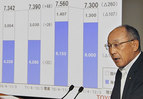 In its latest forecasts, Toyota's annual sales through March 2012 are projected to slip 2 percent to 18.6 trillion yen ($232.5 billion) from 18.99 trillion yen the previous year.