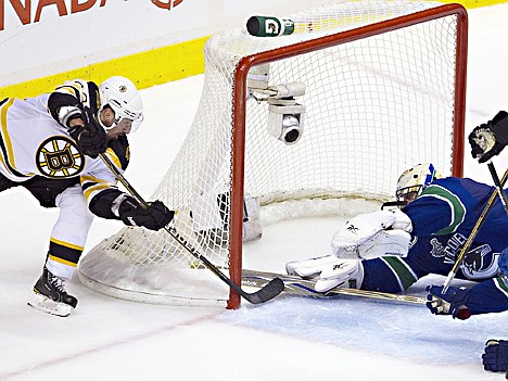 After both teams' top lines missed decent early scoring chances, Bergeron put the Bruins ahead with a one-timer in the slot on a sharp pass from Marchand, the rookie who has emerged remarkably in the finals. Luongo couldn't be blamed for his teammates' soft checking when Bergeron's shot caught the goalpost and ricocheted home.
