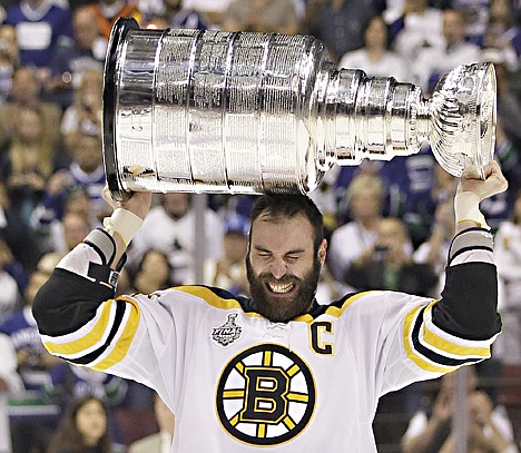Captain Zdeno Chara nearly slipped when he skated away from Commissioner Gary Bettman with the Stanley Cup. And the oversized trophy eventually got a lift from Nathan Horton, the injured Boston forward whose Game 3 concussion on a late hit irrevocably swung the series' momentum to Boston.