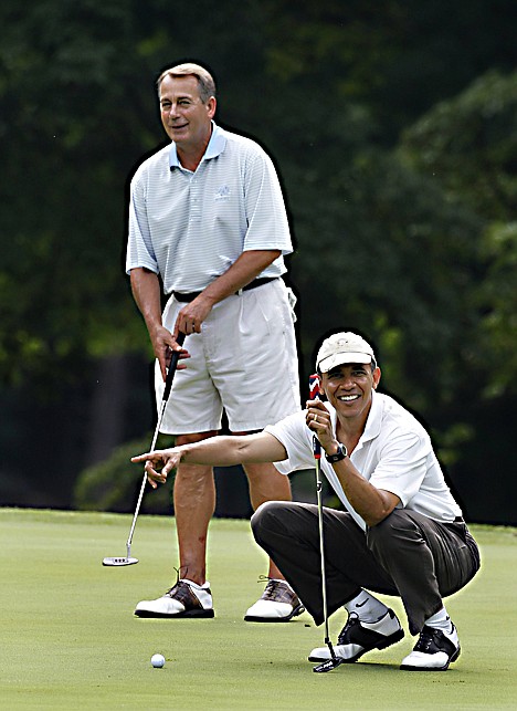 The Obama-Boehner golf outing coincided with White House and congressional negotiations on a long-term deficit reduction plan and raising the government's borrowing authority. Republicans have insisted on significant cuts of about $2 trillion over 10 years or 12 years before agreeing to increase the current $14.3 debt ceiling, which the government says it will surpass Aug. 2.