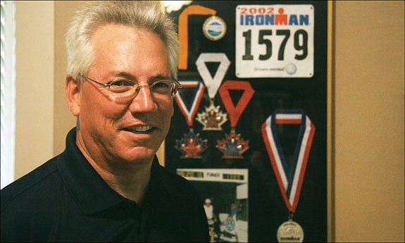 He has entered nine Ironmans, he has completed nine Ironmans: Ironman Coeur d'Alene five times, Canada three times, and Kona, once. He smiles and chuckles often as he recounts stories of training for and racing Ironmans past.