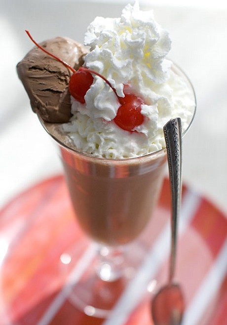 In a blender, combine the coffee, chocolate syrup, half-and-half and 1/2 of the ice cream. Blend until smooth and frothy. Pour into 2 tall glasses and top with a scoop of the remaining ice cream. Top with whipped cream and a cherry, if desired.