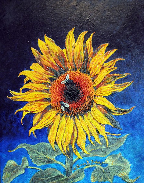 To Vincent from James — The Sunflower, a painting done in 2001 by James Bakke on display on Thursday, June 23, in Whitefish, at the retrospective for the artist.