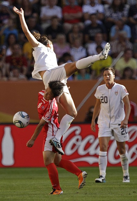 Finally, in the 54th, Wambach dribbled quickly up the left flank and took a step as if to move inside, spinning a North Korean defender around. Wambach dribbled a few more steps before chipping in a perfect cross that Cheney nodded past Hong.
