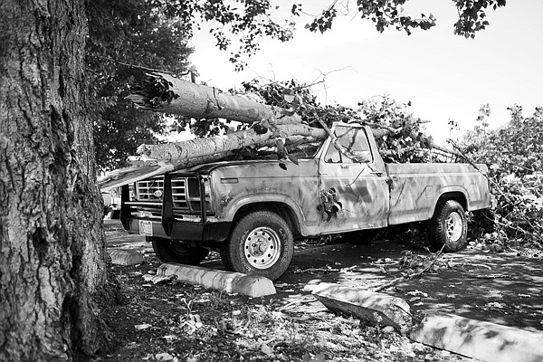 Falling branches crushed Melissa Stevens' 1986 Ford F150 in the Sunridge Point Apartments parking lot Thursday afternoon. "At least now I can stop making payments to my ex," Stevens said.