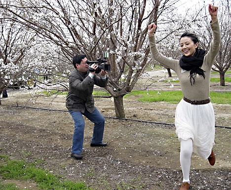 BAKERSFIELD, Calif. (AP) - Chinese movie star Gao Yuan Yuan ambled in front of blooming almond trees, smelled the flowers, learned about pollination and even got stung by a bee - all while two Chinese television crews filmed her for a documentary and television series focused on California's almond country.