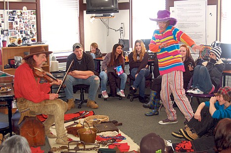 SANDPOINT — History merged with the modern world at the Lake Pend Oreille High School in a Friday morning presentation by colonial America historian Fiddlin’ Red Simpson.