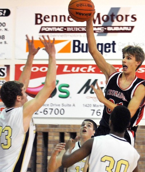 After finishing the regular season with a record of 15-4, the Crusaders won their first game of the state tournament convincingly over Rimrock Christian, 72-42.
