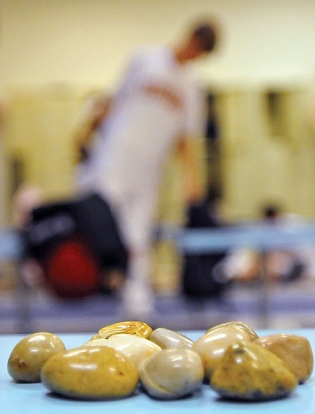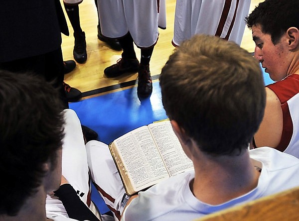 Assistant coach Rich Jarvis challenged the Flathead Valley Homeschool Crusaders boys basketball payers to each take one stone before the first game of the Montana Christian Athletic Association’s state championship in Great Falls last month.
