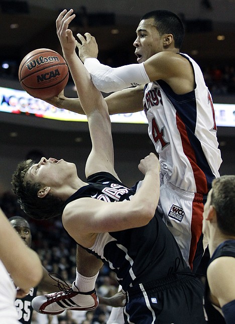 Saint Mary's got within 3 points, at 61-58 on a 3-pointer by Clint Steindl. But Elias Harris countered with a tip-in, and Robert Sacre added two free throws and a powerful dunk off a pass from Stockton to put it out of reach.