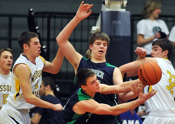 In Friday's first game, Hellgate jumped ahead quick behind the strong play of center Jesse Ginn. The future Montana Griz football player had 13 of his 15 points in the first half and the Knights made sure a 3-pointer at the buzzer would not sink them this time.