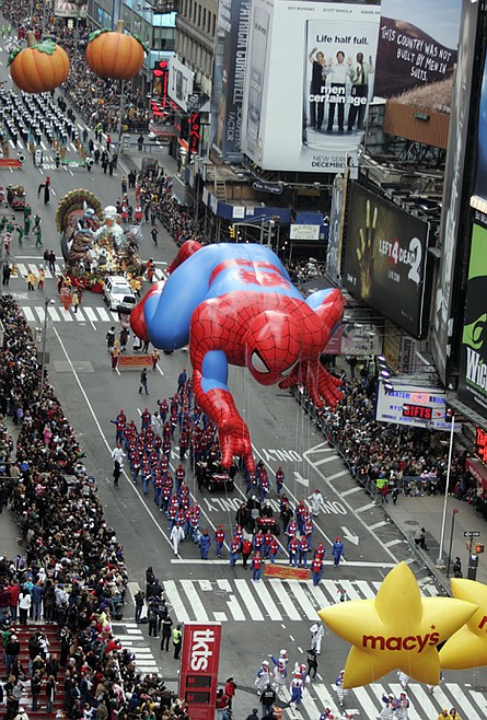 The Macy's Thanksgiving Day Parade is the largest in the nation, featuring giant balloons of cartoon and movie characters, colorful floats and a lineup of celebrity performers. Millions of people watch it on television.