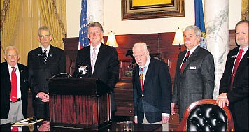 Rep. Frank Henderson, R-Post Falls; Rep. Bob Nonini, R-Coeur d'Alene; and Sen. John Goedde, R-Coeur d'Alene, were among those who supported the bill. Retired Air Force Lt. Col. Bernie Fisher, a Medal of Honor recipient from Kuna, attended the signing ceremony.