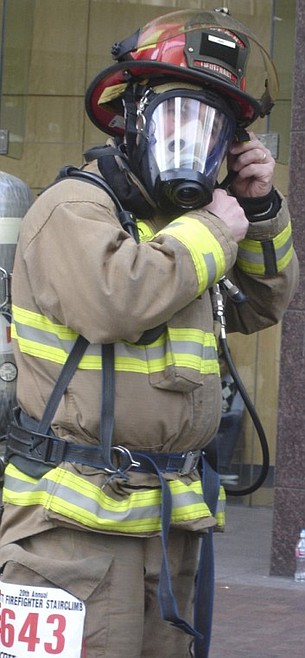 POST FALLS - Climbing 69 flights of stairs - 1,311 steps in all - with more than 50 pounds of firefighting gear on is hard work.