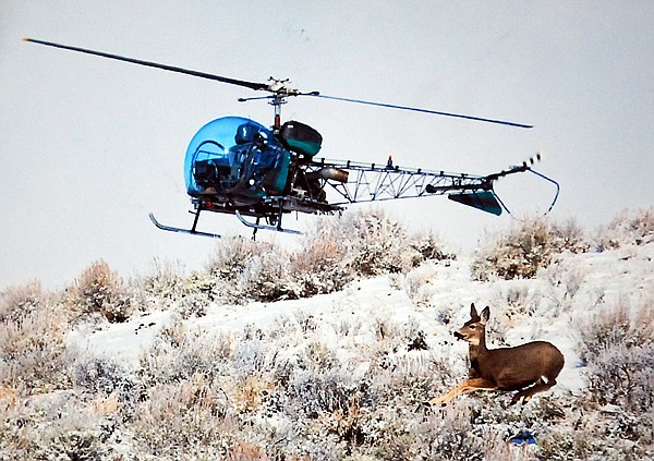 Another enjoyable aspect of his job was the capture and darting of wildlife. The captures involved mule deer, elk, moose and sheep. These trips included a lot of “net gunning” where Gipe would move herds into a net so that radio collars could be installed.