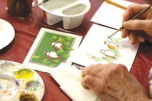 Inside the Moses Lake Senior Center, the group of artists were quietly working in a circle on each of their individual projects.