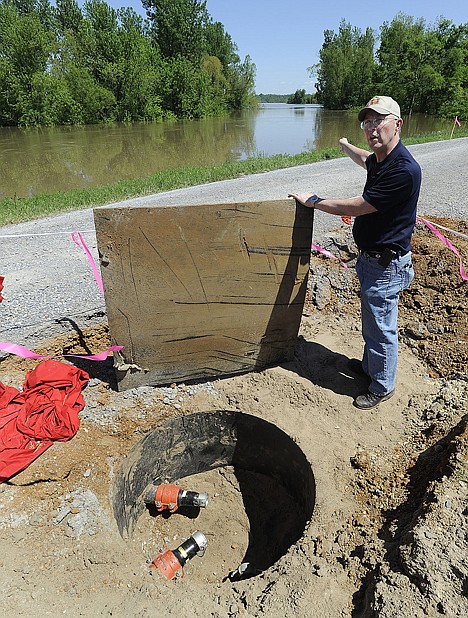 If the Corps of Engineers decides to breach the levee in Cairo, it would use a sludgy mix of explosives pumped into 11,000 feet of pipes inside the levee to weaken a 2-mile-wide section, Pogue said. The force of the water would push through to the land that sits behind the levee in Missouri's Mississippi County. Levees would be breached in two more spots further downstream near new Madrid, Mo., so at least some of the water could flow back out into the Mississippi.