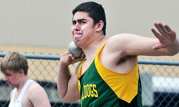 Shot put - 1, Derek Jensen, Nox, 48-2 1/2. 2, Sawyer Zimmerman, Lib, 47-9 1/2. 3, Daniel Jones, CF, 45-10. 4, Marshall Boyland, Gla, 44-11. 5, Clark Rubel, Pol, 44-10 1/2. 6, Cody Hoff, HSprings, 43-11 1/2.