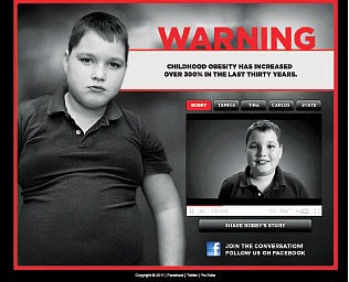 The images are striking: Overweight boys and girls staring somberly from billboards and online videos, real-life embodiments of the blunt messages alongside.