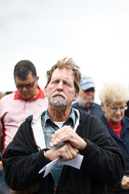 In Coeur d'Alene, about 200 gathered in front of City Hall at noon for prayer, praise and music. Under cloudy, gray skies, 15 pastors took turns leading the group as they turned to Scripture.