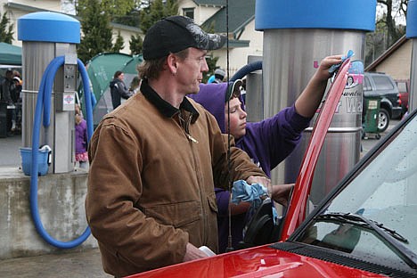 Rebekah Bailey, a Coeur d'Alene mother of two, brought her vehicle to Lett's Downtown Car Wash on Third Street, where a small army of volunteers from Heart of the City Church was busy cleaning, cooking and pampering.