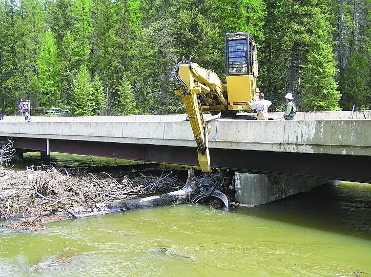 The Montana Department of Transportation put machinery to work Monday removing downed trees from the Stillwater River to prevent damage to a bridge crossing on Twin Bridges Road west of Whitefish.