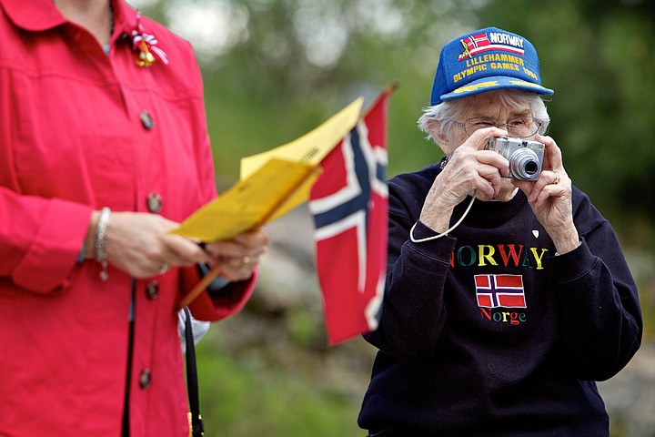 About 25 Norwegians waved the country's flag, donned red, white and blue attire and shared in a potluck picnic to celebrate Norway's heritage. Post Falls City Council member Linda Wilhelm read a proclamation commemorating the day.
