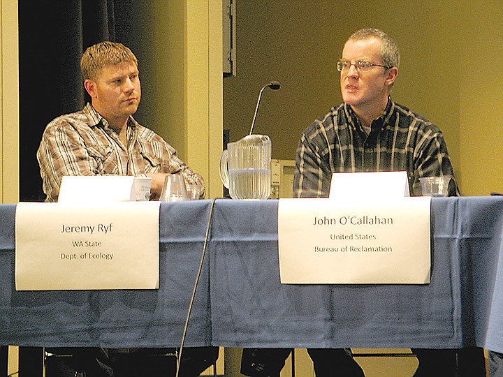Representatives from the firms planning the dredging, the Moses Lake Irrigation and Rehabilitation District, the City of Moses Lake and the state met and answered questions during a recent forum at Big Bend Community College. They talked about plans to remove sediment from the lake next to Alder Street.