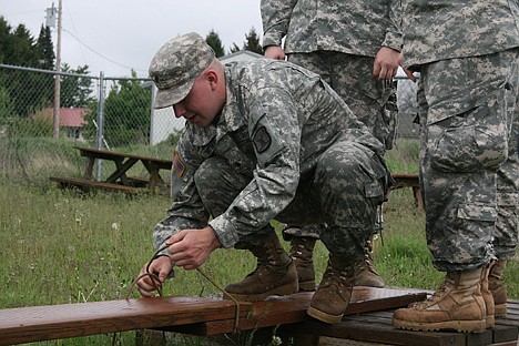 POST FALLS - In a damp, grassy field near Real Life Ministries of Post Falls, about a dozen Idaho National Guardsmen and women stood closely-packed on small wooden platforms.