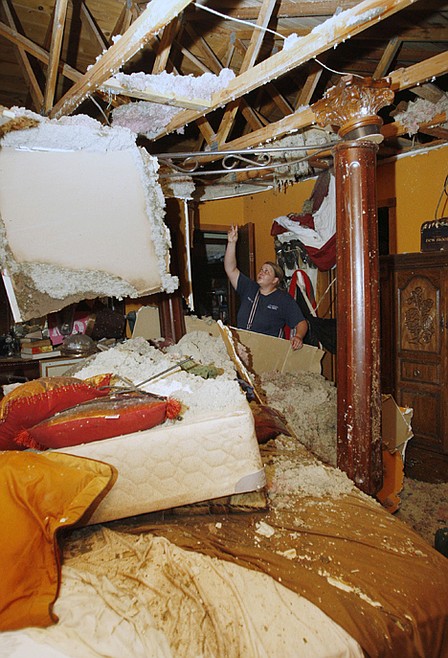 The family then decided to flee their home as the storm approached, crossing the Oklahoma City metropolitan area to Shawnee. Once there, sirens sounded again for a storm approaching the Oklahoma City area from the south. The four drove around for three hours before returning to find their roof gone. The pantry was standing, but Hartman wasn't convinced the family would have survived the strong storm.