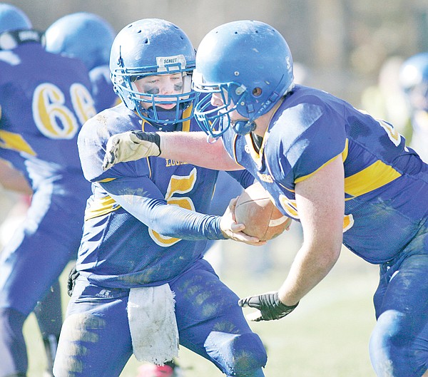 QB Micah Germany hands off to Nic Robertson first quarter vs Hamilton 1-29-11