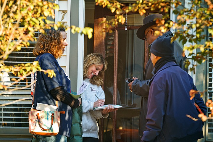 But they took an hour or so to head out late Wednesday afternoon seeking signatures. Wearing blue T-shirts that read "5-day is the wrong way" and "Save American's Postal Service," they set out by foot and by car. They knocked on doors, walked into businesses and stopped people on sidewalks.