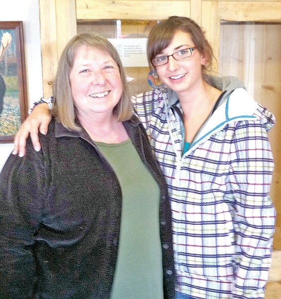 Margo McCormick, left, of Troy is the lucky winner of the fundraising drawing held by the Lincoln County Democrats. McCormick won the gun cabinet pictured behind her, which was handmade by the owner of the Cabinet Mountain Furniture at 206 Mineral Ave. The cabinet list price was $2,500, and it was made from trees cut from his property, cured, milled all by him. Standing with McCormick, a retired teacher, is one of her former students Robeie Pluid.