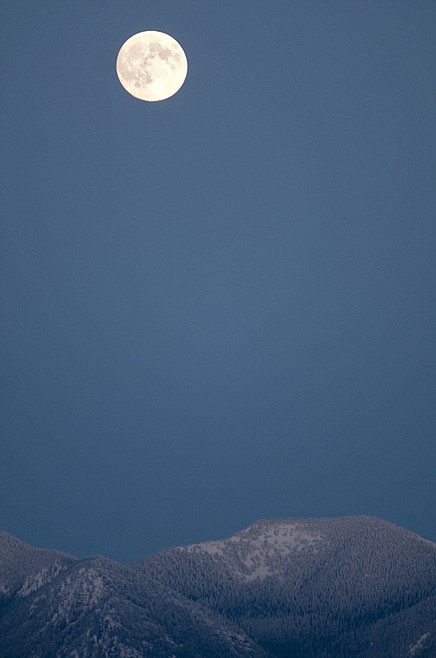 The moon rises over the Swan Mountain Range Wednesday evening.