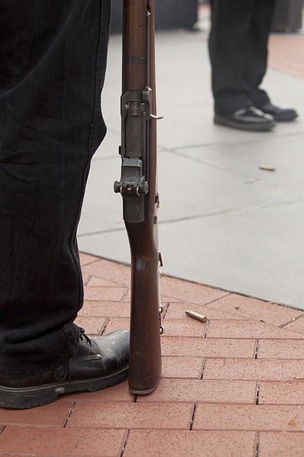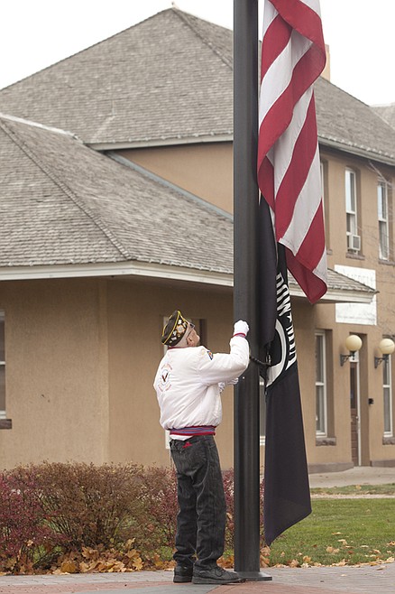 Retired Maj. Gen. Paul Vallely gives the keynote address during a Veterans Day ceremony at Depot Park in Kalispell on Friday morning.