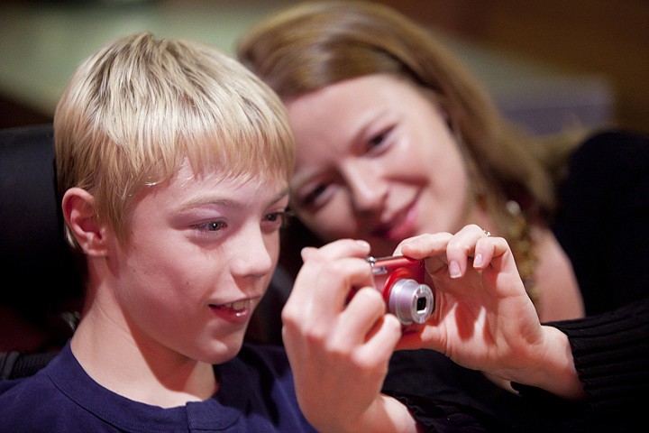 Gina Boyes shows a picture she just took to her son Tyson on Nov. 15 during a gathering at Pizza Hut in Kalispell.