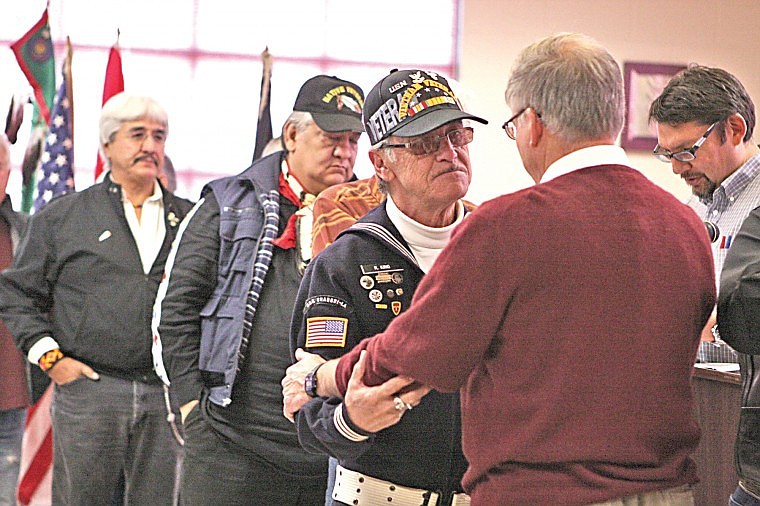 An emotionally-charged ceremony honoring the Confederated Salish and Kootenai Tribal veterans took place Friday afternoon at the Joe McDonald Health and Fitness Center in Pablo. Tribal leaders put a special emphasis on honoring Vietnam vets who have never been rightfully honored, chairman E.T. “Bud” Moran said in the welcoming.