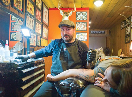 "You can't go wrong with a flower," he said last week at his new tattoo parlor in Columbia Falls. "Things that are organic are more fun to tattoo."