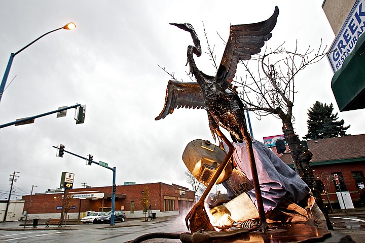 COEUR d'ALENE - Broken, stolen, returned now standing, wings outstretched, surveying its kingdom.