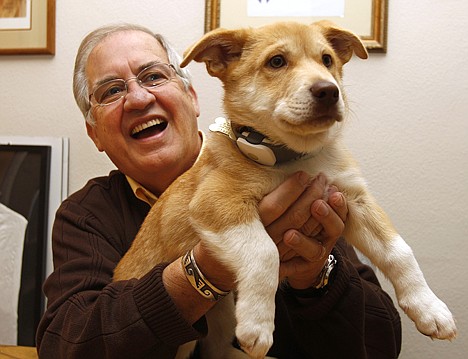 "I never would have dreamed in my lifetime that there would come a day when I would get a text message for help from my pet," said Mike Arms, president of the Helen Woodward Animal Center in Rancho Santa Fe, Calif., who uses Tagg with his puppy Anchovy.