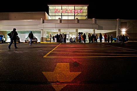 As Thursday's hours waned, hundreds lined up like human barricades outside major retail outlets in Coeur d'Alene, prepared to stampede toward Black Friday sales at the now prevalent midnight openings.