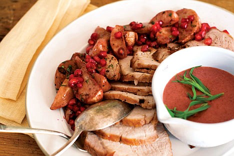 As with ham, glazing a pork loin roast is important for flavor. Technically, a glaze is a thick sugar coating (think doughnut). I make my own sweet, though sugar-free, glaze with antioxidant-rich pomegranate juice and calorie-free stevia, then thicken it with arrowroot.