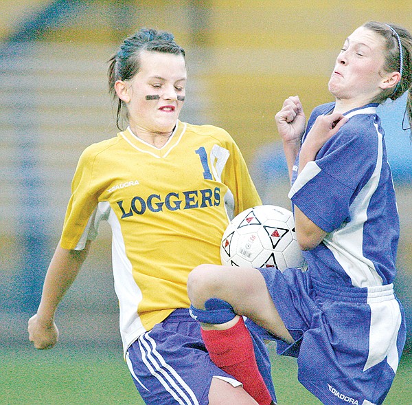 Freshman Ceara Kyle battles for control vs Bigfork's Megan Pancoast 10-4-11