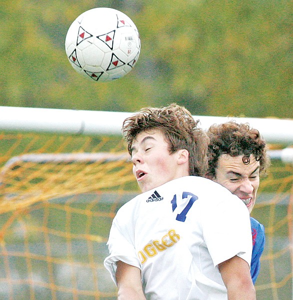 Junior midfielder Jordan Quinn attempts a header into the goal vs Bigfork 10-4-11