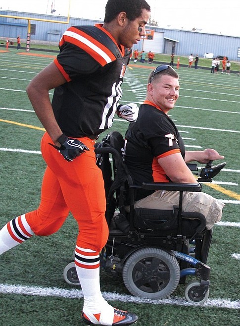 This summer, Parker was a guest of honor at a major Wounded Warrior fundraiser called Battle at the Capitol, a week-long football invitational and golf tournament in Northern California. On Sept. 10, he spoke to thousands of Griz fans at Washington-Grizzly Stadium in Missoula, and last weekend, he flipped the coin during the Ronan Chiefs’ homecoming game. He’s been on the radio, he’s been on TV.