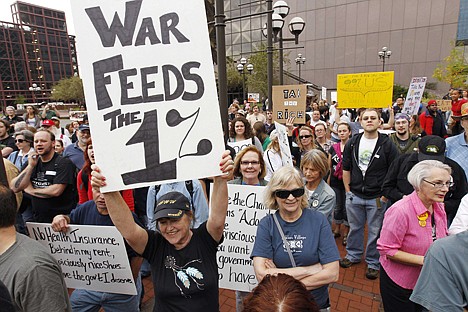 "We're a broad range - everyone's affected in a different way," said John Crisano, 27, who'd answered a call for college students to attend Wednesday's protest. "But we're all here because we're upset at the way the government is being run."