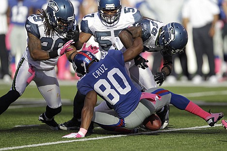 Notes: Two Giants, guard Chris Snee and long snapper Zak DeOssie, sustained concussions. ... Baldwin had 12 receptions coming into the game for 194 yards. ... The game was a relative sackfest: New York had six, led by Jason Pierre-Paul with 2?, and Seattle had three, two by Chris Clemons.
