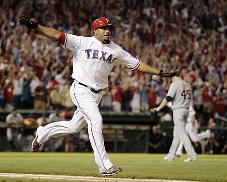 Texas went to closer Neftali Feliz and had him intentionally walk Cabrera, loading the bases for Martinez. He hit a flare into shallow center field that Andrus juggled, pinning the ball against his chest to end the threat.