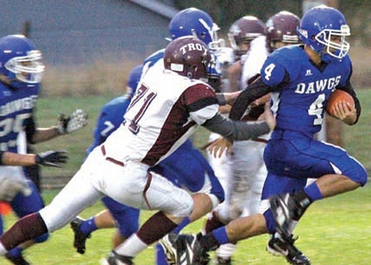 Dylan Evans rushed for two touchdowns from a yard out and Austin Durglo ignited the offense with a 20-yard dash of his own as the Mission Bulldogs returned to the win column with a 23-12 victory over the visiting Troy Trojans.